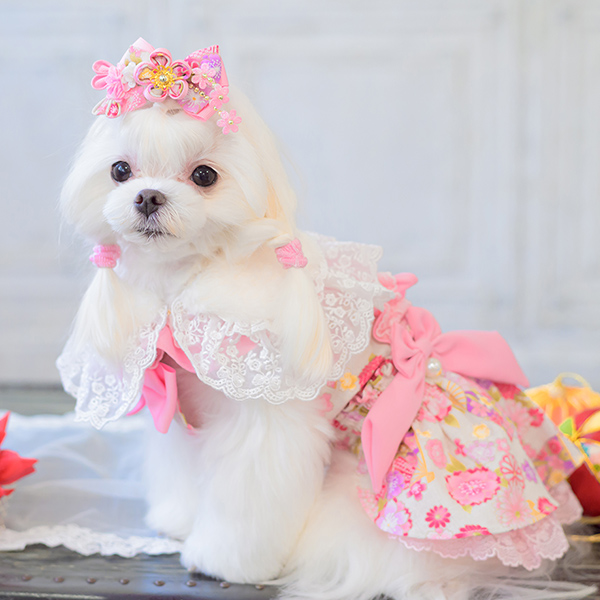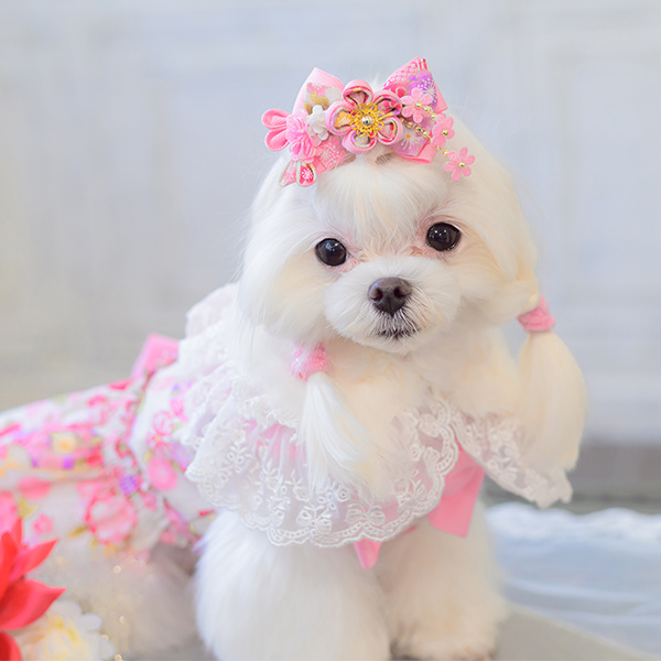 白い毛のワンちゃんに濃色のウェア・アクセサリーを着用する際には十分注意してください。