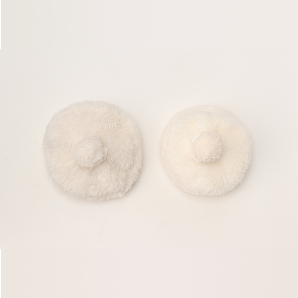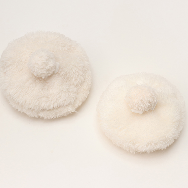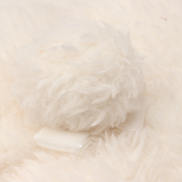 中心のポンポンの下に、ベルベットリボンでループを作ってあり、そこにバレッタを通せるようにしてあります。