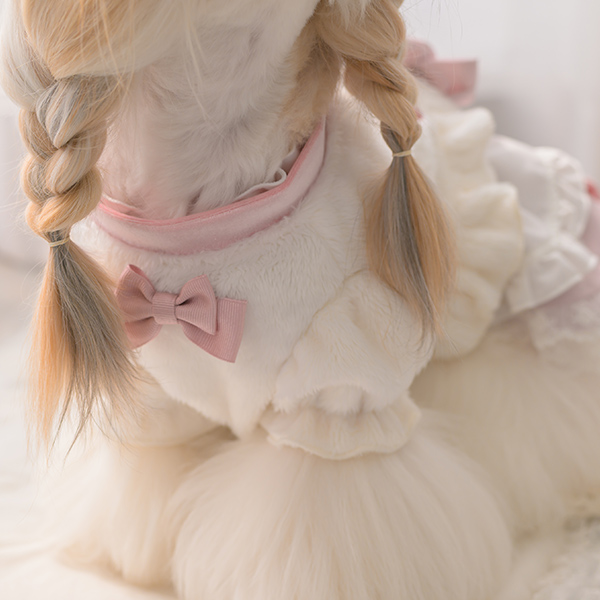素材は、適度な肉厚の毛足の短いファー素材なので、保温性も兼ね備えています。