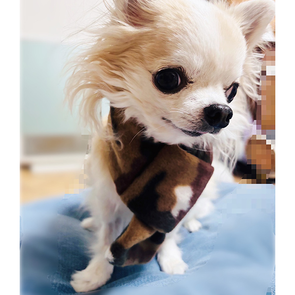 白い毛のワンちゃんに濃色のウェア・アクセサリーを着用する際には十分注意してください。