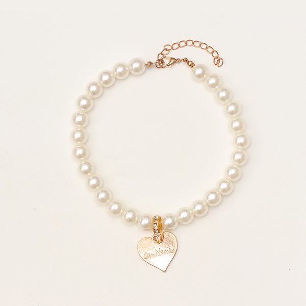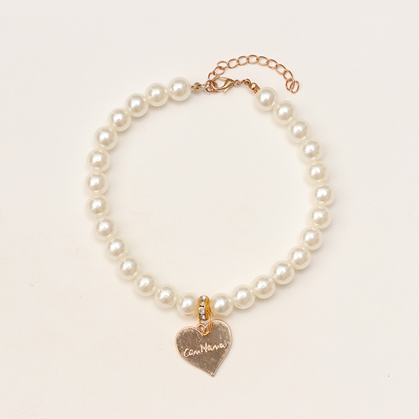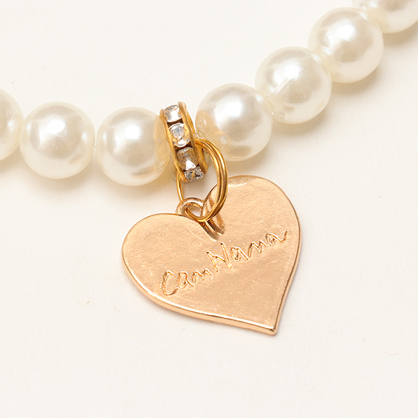 CanNanaロゴ入りハートチャームがきらり。パールネックレスは、合わせるお洋服の色の幅が広い。抜群コーデ力で、おしゃれの必須アイテムです。アジャスト部分を活かし、約3cmの調節が可能です。