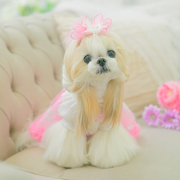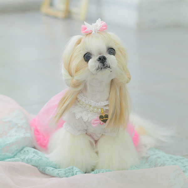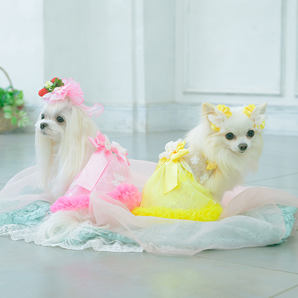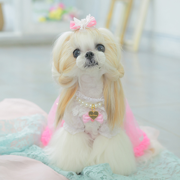 白い毛のワンちゃんに濃色のウェア・アクセサリーを着用する際には十分注意してください。